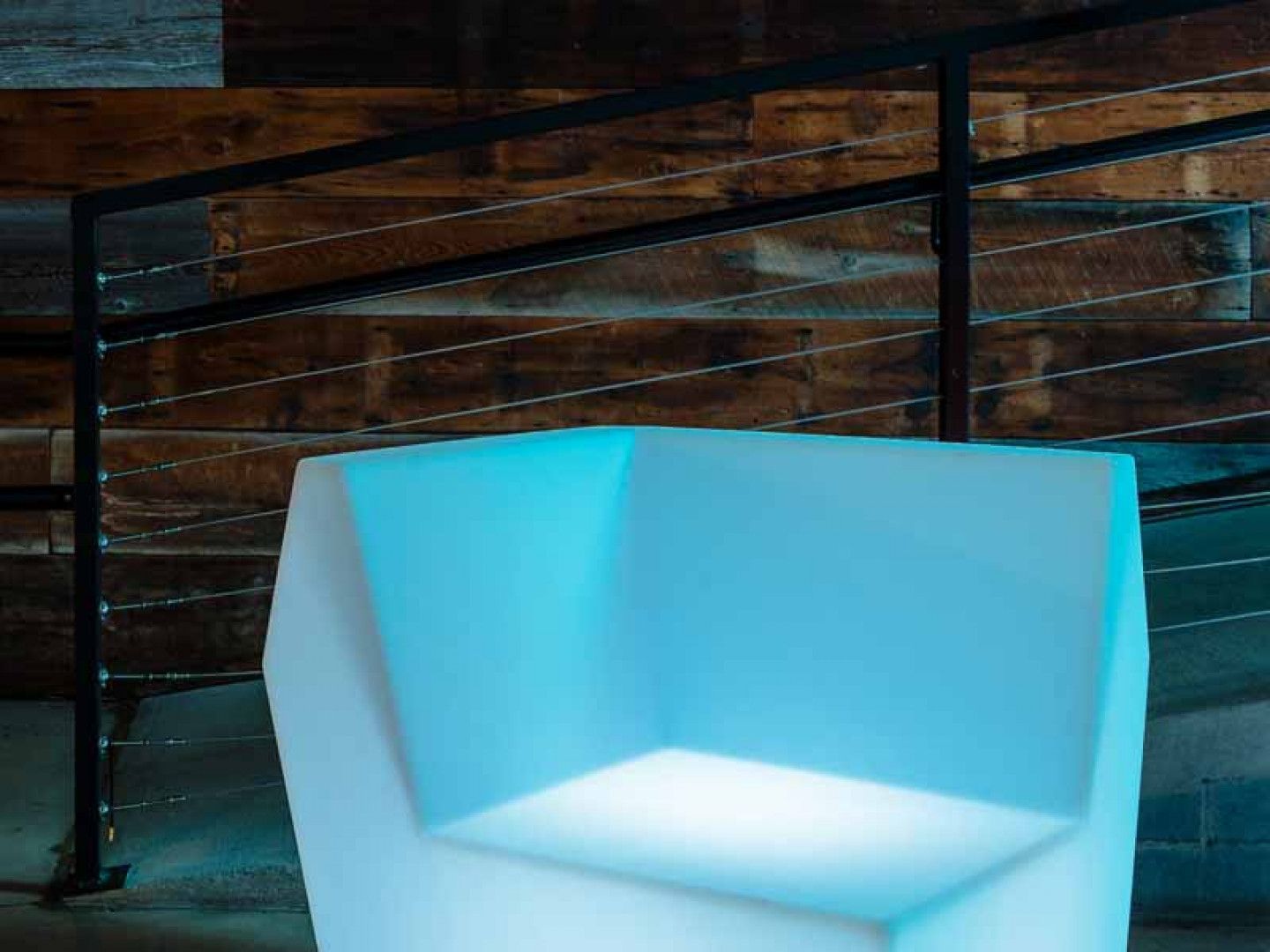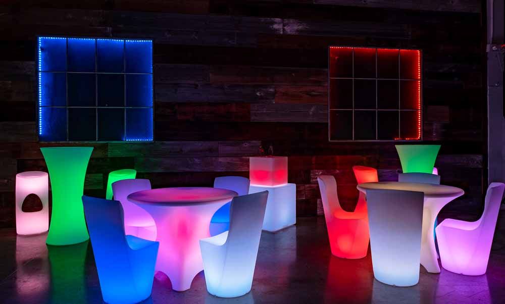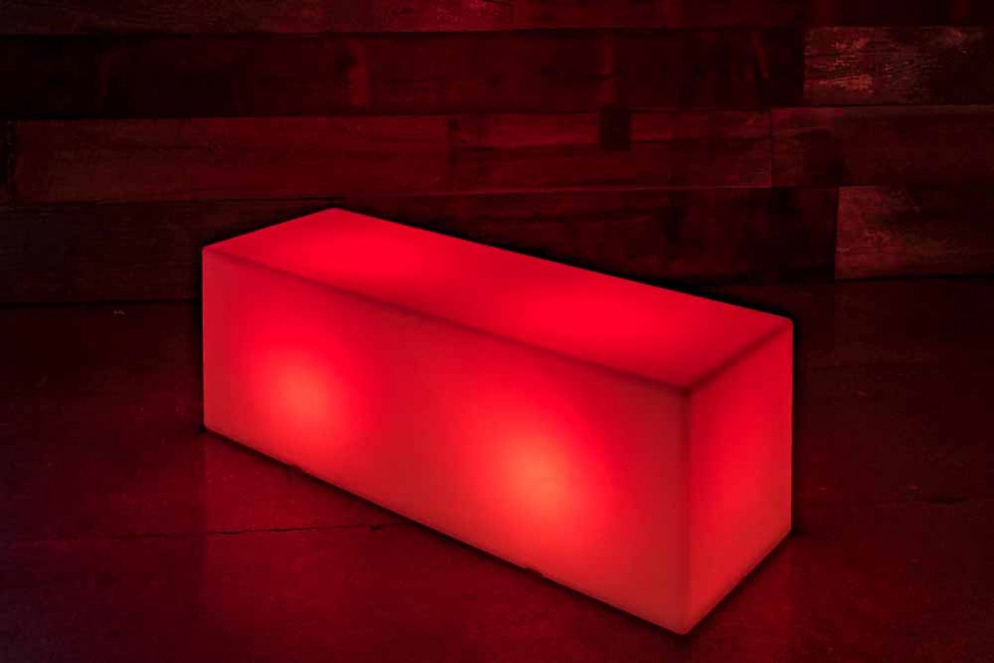 Light up the night and your affair with your own Glow LED Furniture Rentals. Can be set to 16 different colors and also fade and strobe. We can customize with your brand, logo or name lit up.